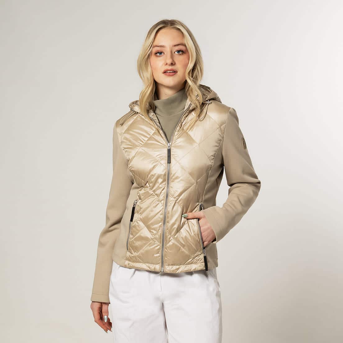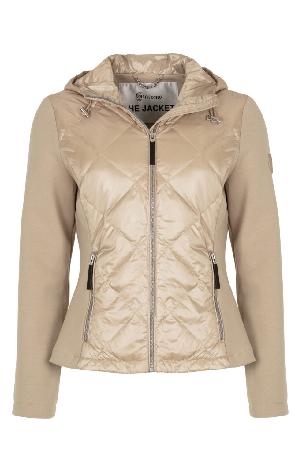 Sporty jacket with a slim fit, hood and a combi of satin and matte Nylon