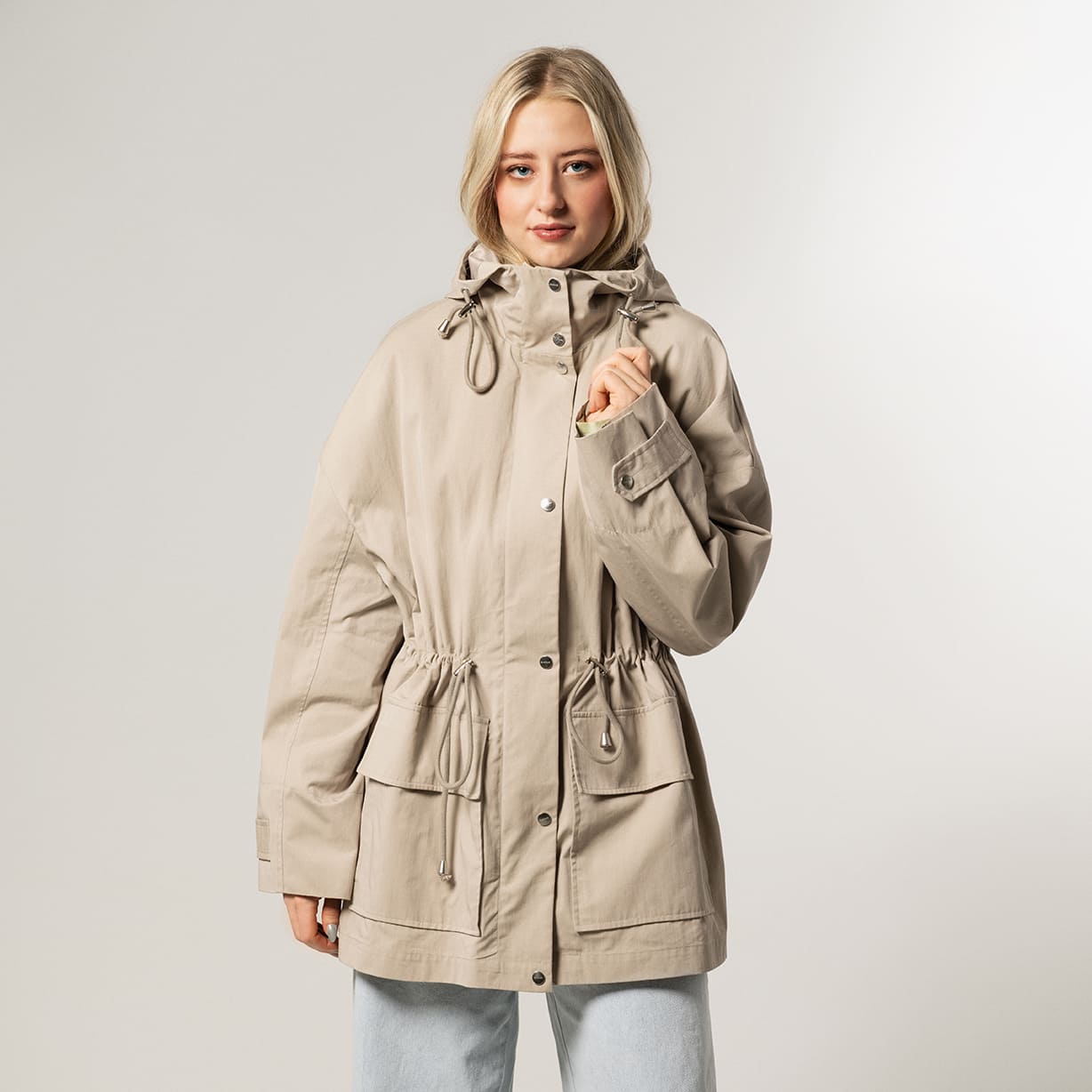 Twill parkajacket with a wide fit and hood
