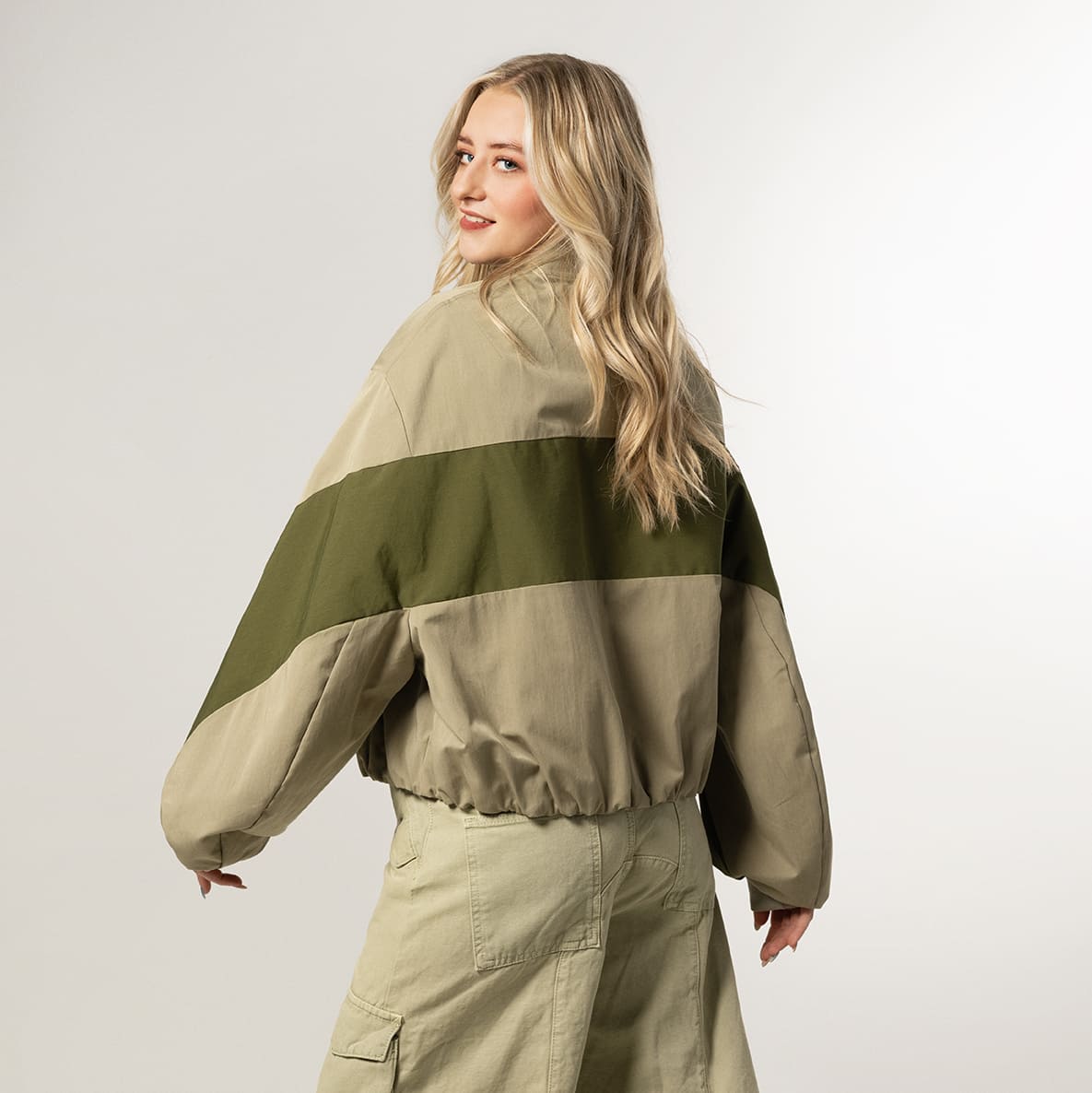 Two-tone short bomberjacket with a wide fit